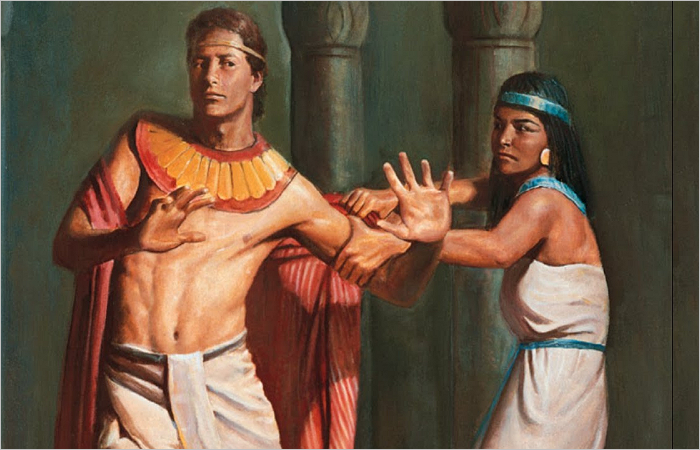 Joseph adamantly refused her as she continued day by day trying to seduce him. Then one day as he was trying to leave her presence, she grabbed his garment as he left. Then when her husband came home, she showed him the garment and told him that Joseph had tried to seduce her and that she had screamed and grabbed ahold of his shirt.